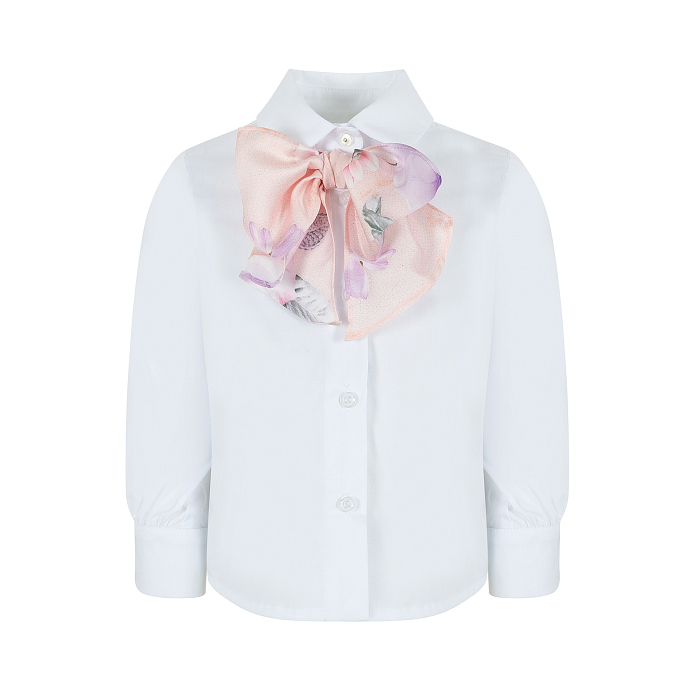 Белая блуза для девочек с цветочным шарфом