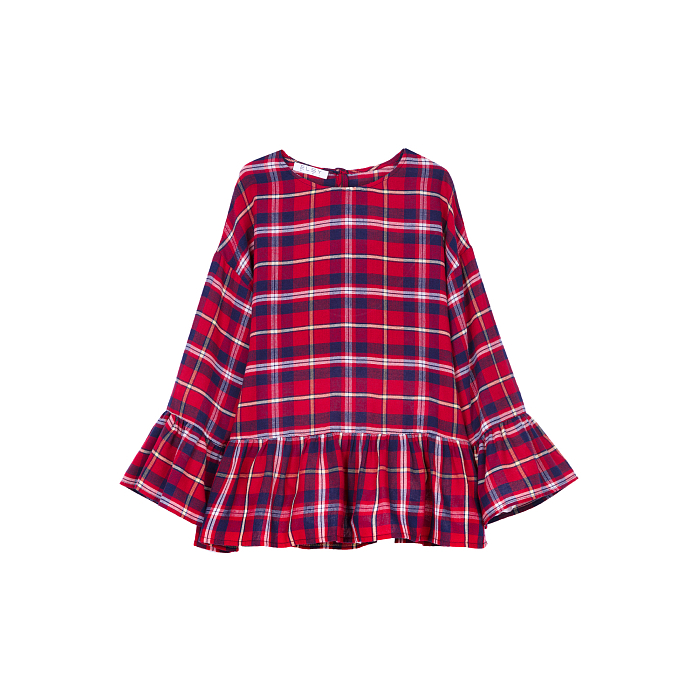 - 🎨 Дизайн: клетчатый принт, контрастные линии, рукава с воланами