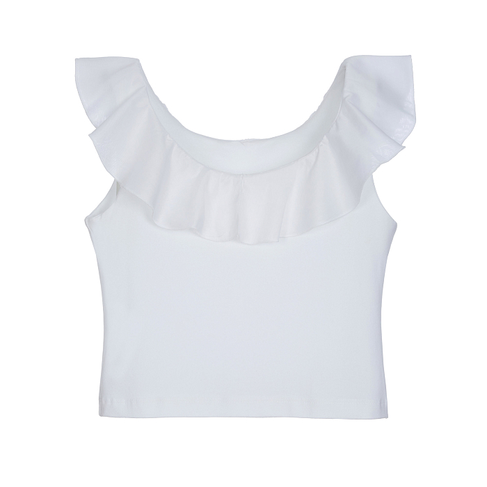 - 🎨 Дизайн: белый цвет, элегантные оборки на плечах