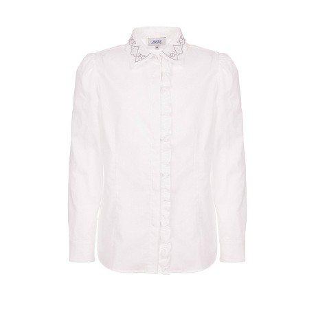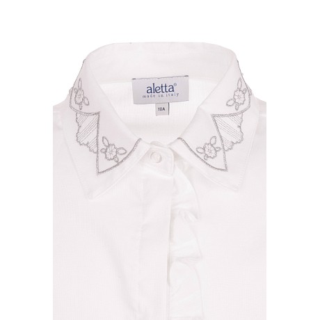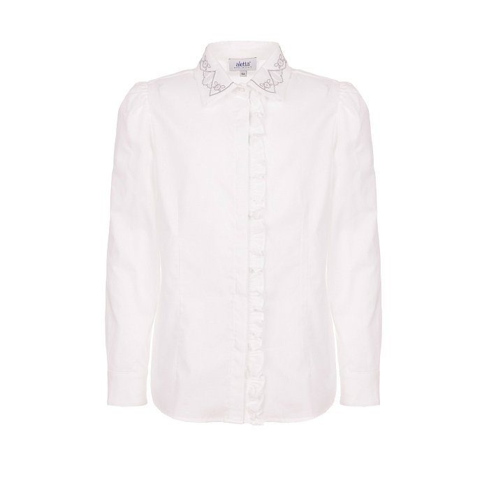 Белая блузка Aletta – это идеальный выбор для девочек! Изготовленная из 100% хлопка, она украшена изящными воланами и кружевом на воротнике. Элегантный белый цвет подчеркивает нежность и изысканность, а воланы придают блузке особую легкость и шарм. На фотографиях видны аккуратные воланы по краю воротника и изящное кружево, которое создает нежный и романтичный настрой. Качество от итальянского бренда и внимание к деталям делают эту блузку отличным выбором для вашего ребенка!