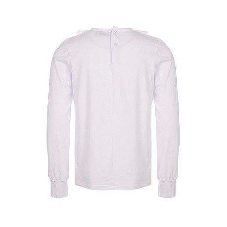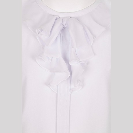 - 🎨 Дизайн: воротник-стойка, оборки, белый цвет