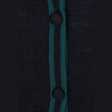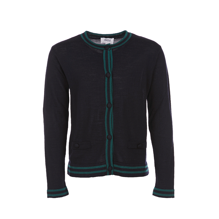 Кардиган Aletta – идеальный вариант для осени и весны! Изготовлен из 100% шерсти, он идеально подойдет для девочек 9-12 лет. Темно-синий цвет с зелеными полосками и пуговицами создает стильный и модный образ. На фотографиях видна аккуратная зеленая окантовка по краю и мягкая текстура ткани. Качество от итальянского бренда и внимание к деталям делают этот кардиган отличным выбором для вашего ребенка!