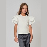 Молочная школьная трикотажная блузка Андерсен с рукавами-крылышками для девочек (6-14 лет)