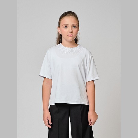 Белая школьная трикотажная блузка для девочек от Андерсен