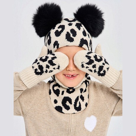 Шлем для девочек с леопардовым принтом и меховыми помпонами