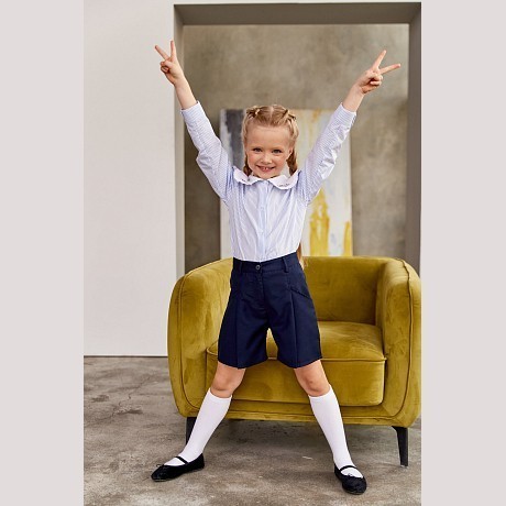 Голубая блузка для девочек Ella B. с воротником - доставка СДЭК по всей России - EBR029/23-02