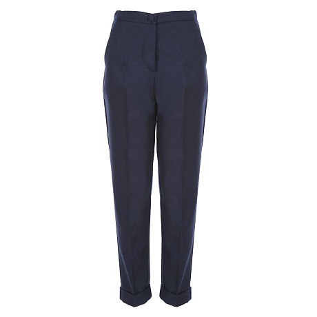 Текстильные брюки Ella B. – идеальный выбор для девочек от 7 до 14 лет! Изготовленные из высококачественного материала 65% полиэстер 35% вискоза с подкладкой 60% ацетат, 40% вискоза, эти брюки обеспечивают комфорт и свободу движений. Нежный темно-синий цвет подчеркивает стиль и элегантность. Брюки с высокой посадкой и удобной застежкой на пуговицу идеально сидят и подходят для различных случаев – от школы до прогулок. На фотографиях видны детали: удобная застежка на пуговицу, высокая посадка и аккуратные складки по бокам.