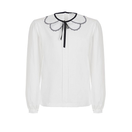 - 🎨 Дизайн: воротник-стойка с эластичным кружевом, белый цвет