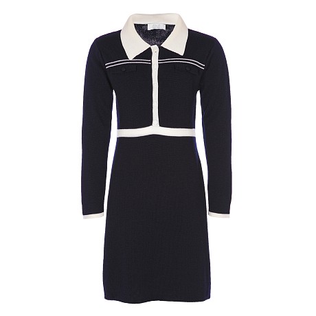 Платье для девочек от Ella B. выполнено из 100% шерсти мериноса, что делает его мягким и комфортным для нежной кожи. В темно-синем цвете оно идеально подойдет для девочек от 7 до 10 лет. Классический крой с белой окантовкой по краю воротника и поясу делает это платье стильным и элегантным. На фотографиях видна аккуратная белая окантовка по краю и мягкая текстура ткани. Качество шерсти мериноса и внимание к деталям делают эту одежду отличным выбором для вашего ребенка!