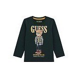 Темно-зеленая футболка с длинным рукавом GUESS с принтом медведя для мальчиков (2-6 лет)