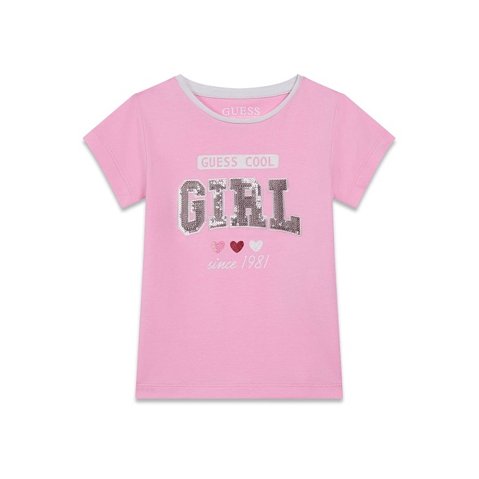 - 🎨 Дизайн: принт с надписью "GUESS COOL" и серебристыми пайетками