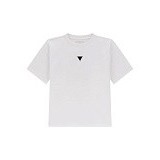 - 🎨 Дизайн: белая основа, круглый вырез горловины, черный треугольный логотип на груди
