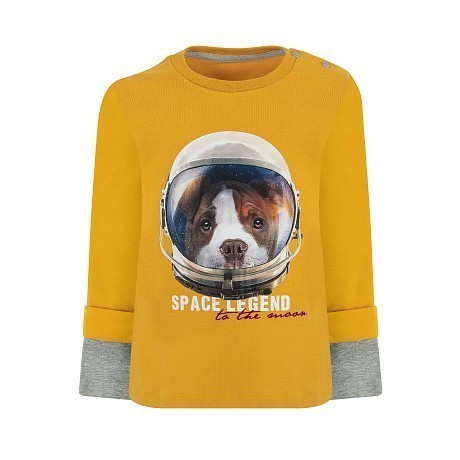 Золотистый джемпер для мальчиков Lapin House с принтом собаки в космическом шлеме
