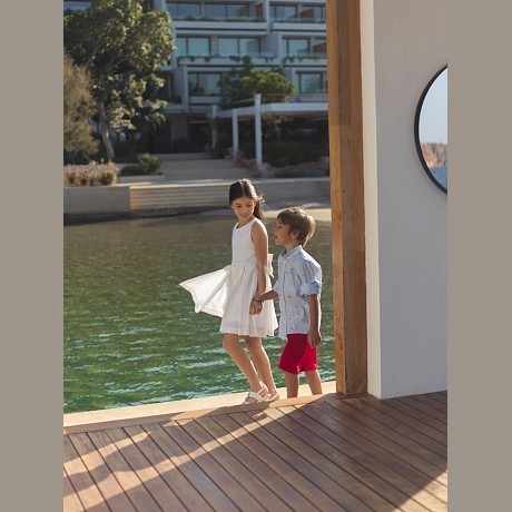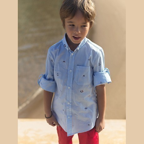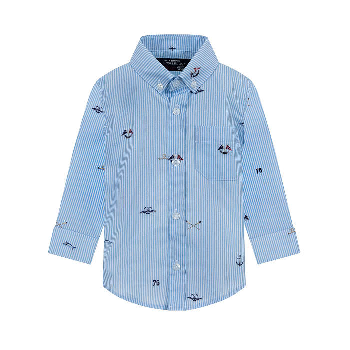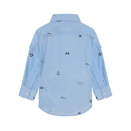 Рубашка Lapin House – это идеальный выбор для юных моряков! Изготовленная из 100% хлопка, она украшена морскими принтами: дельфины, якоря и мачты на бело-голубой полоске. Нежная текстура ткани и удобная посадка делают эту рубашку отличным выбором для вашего ребенка. На фотографиях видны аккуратные морские принты, белые пуговицы и мягкая текстура ткани. Качество от бренда из Греции и внимание к деталям делают эту рубашку стильным и удобным выбором для вашего мальчика!