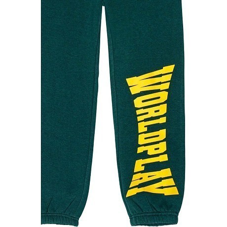 - 🎨 Дизайн: темно-зеленый цвет, надпись "WORLDPLAY", эластичная резинка на поясе, удобная посадка