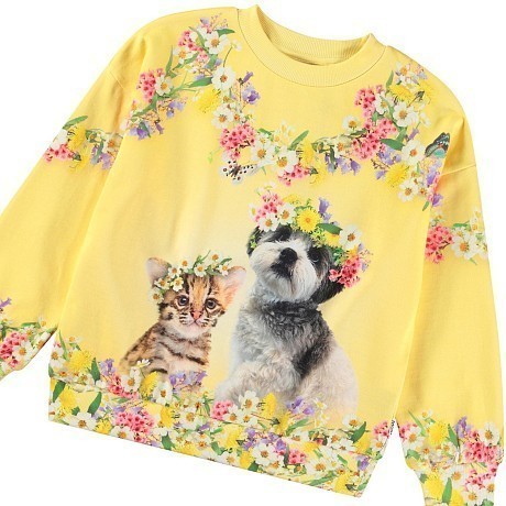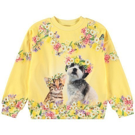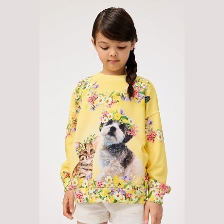 Желтый джемпер для девочек Molo с принтом кошки и собаки