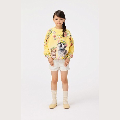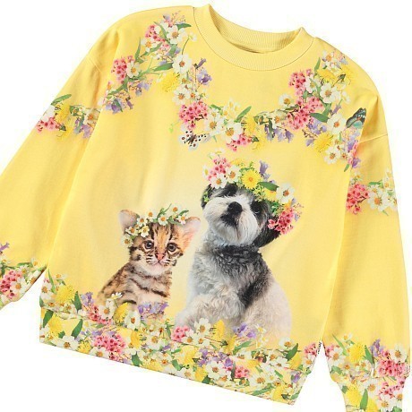 Джемпер для девочек Molo – это идеальный выбор для весеннего настроения! Изготовленный из 100% натурального хлопка, он украшен очаровательным принтом с цветами и животными. Желтый фон с яркими розовыми, белыми и желтыми цветами создает радостное и веселое настроение. На передней части изображены милые котенок и щенок, а на рукавах и пояске – цветочные венки. Качество от бренда из Дании и внимание к деталям делают этот джемпер отличным выбором для вашего ребенка!