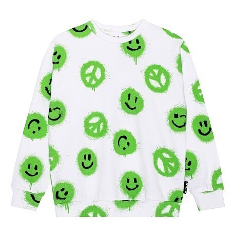 Джемпер Molo – это отличный выбор для вашего ребенка! Он выполнен из натурального хлопка и украшен яркими зелеными смайликами с черными улыбками и знаками мира. Белый фон делает дизайн особенно ярким и веселым, идеально подходит для летнего периода. Бренд Molo из Дании гарантирует высокое качество и комфорт для нежной кожи вашего ребенка. Быстрая доставка СДЭК по всей России.