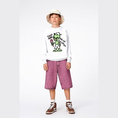 Джемпер Molo – это идеальный выбор для юных модников! Изготовленный из 100% натурального хлопка, он украшен очаровательным принтом зеленого пришельца, держащего мороженое. Белая основа с ярким зеленым пришельцем и розовым мороженым создает игривое и веселое настроение. На фотографиях видна аккуратная белая окантовка по краю и мягкая текстура ткани. Качество от бренда из Дании и внимание к деталям делают этот джемпер отличным выбором для вашего мальчика!