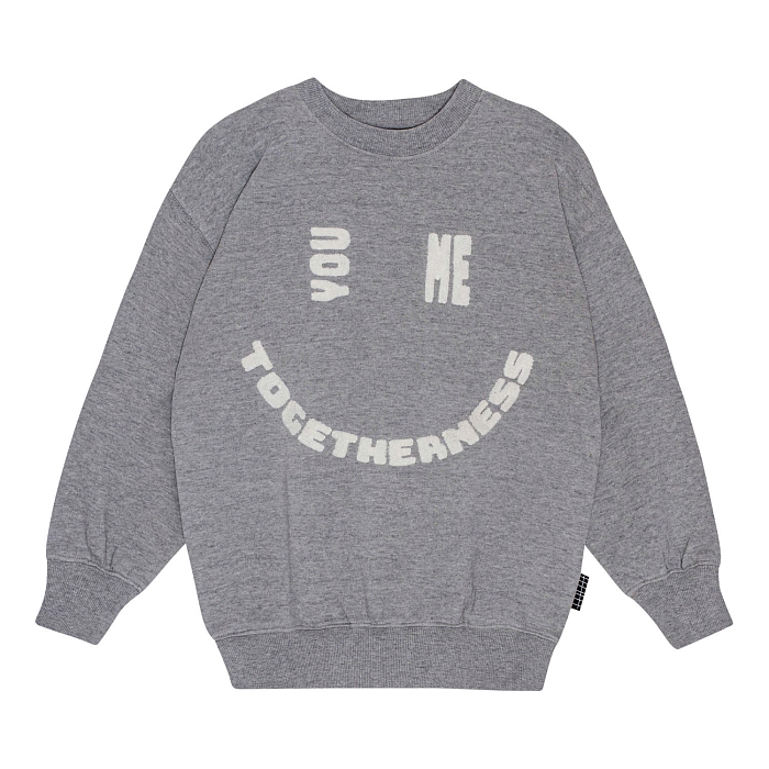 Джемпер для мальчиков Molo – это идеальный выбор для юных модников! Изготовленный из 100% натурального хлопка, он украшен оригинальным принтом TOGETHERNESS. Серый цвет подчеркивает универсальность и стиль, а надпись на улыбке добавляет позитивной энергии. На фотографиях видны мягкие рукава, круглый вырез горловины и аккуратная отделка края. Качество от бренда из Дании и внимание к деталям делают этот джемпер отличным выбором для вашего подростка!