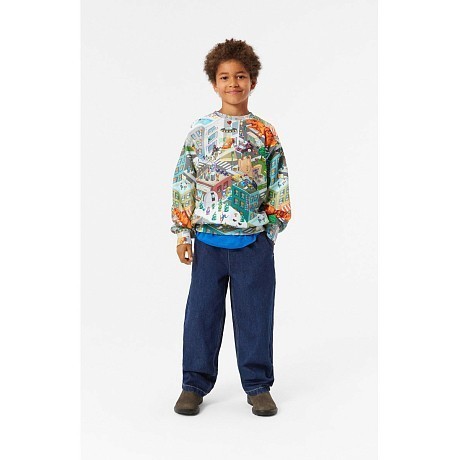 Джемпер Molo – это идеальный выбор для детей! Изготовленный из 100% натурального хлопка, он украшен ярким принтом с городским пейзажем, динозаврами, машинами и другими деталями. Зеленый цвет создает ощущение свежести и весны. На фотографиях видна аккуратная окантовка по краю и мягкая текстура ткани. Качество от датского бренда и внимание к деталям делают этот джемпер отличным выбором для вашего мальчика!
