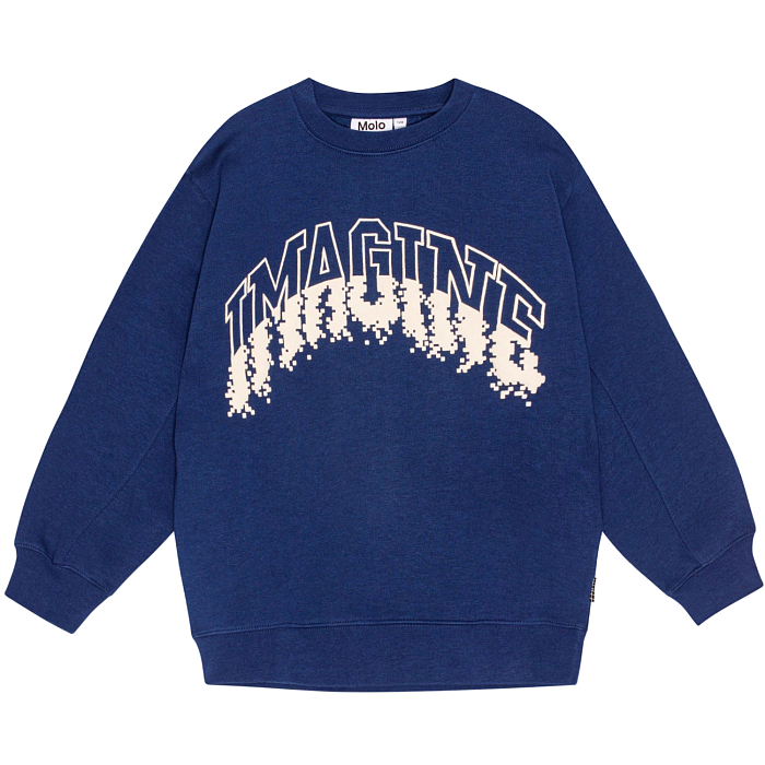 Джемпер Molo – это идеальный выбор для юных модников! Изготовленный из 80% хлопка и 20% полиэстера, он идеально подходит для мальчиков в возрасте от 8 до 14 лет. Темно-синий цвет с ярким принтом "IMAGINE" на груди делает эту модель стильной и запоминающейся. Нежная ткань, удобная посадка и качественная вышивка создают идеальную комбинацию комфорта и моды. На фотографиях видна аккуратная вышивка по центру и мягкая текстура ткани. Качество от датского бренда Molo и внимание к деталям делают этот джемпер отличным выбором для вашего ребенка!
