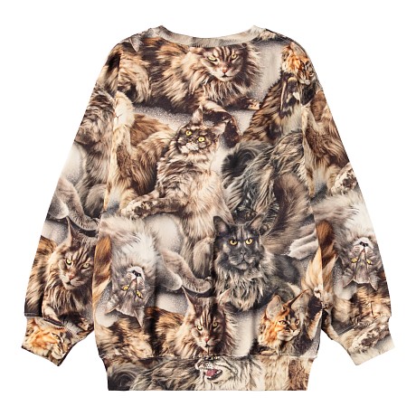 Джемпер Molo – это идеальный выбор для детей от 4 до 8 лет! Изготовленный из 100% натурального хлопка, он украшен очаровательными кошками в разных позах и выражениях. Коричневый фон с разнообразными оттенками создает игривое и в то же время уютное настроение. На фотографиях видны разнообразные кошачьи породы, каждая с уникальным выражением лица и позой. Нежная текстура ткани и удобная посадка делают этот джемпер отличным выбором для вашего ребенка!