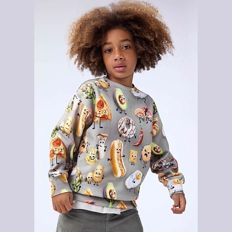 Джемпер Molo – это идеальный выбор для мальчиков! Изготовленный из 100% натурального хлопка, он украшен забавными фруктами и овощами с милыми лицами. Серый фон идеально сочетается с яркими элементами дизайна, создавая неповторимое и в то же время уютное настроение. На фотографиях видны различные фрукты и овощи, такие как яблоки, бананы, авокадо, картофель и другие. Джемпер с эластичной резинкой на рукавах обеспечивает комфортную посадку. Качество от датского бренда и внимание к деталям делают этот джемпер отличным выбором для вашего ребенка!