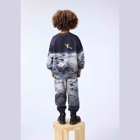Черный джемпер Molo – это идеальный выбор для юных путешественников! Изготовленный из 100% натурального хлопка, он украшен космическим принтом с астронавтом на Луне. На заднем плане – земля, другие планеты и звездное небо. Нежная черная основа с яркими космическими элементами создает волшебное и приключенческое настроение. Бренд Molo из Дании гарантирует премиум качество и внимание к деталям. Быстрая доставка СДЭК по всей России.