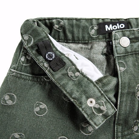 Джинсы Molo – это стильный выбор для вашего юного модника! Изготовленные из 90% хлопка и 10% эластана, они украшены забавными принтами пришельцев. Нежный зеленый цвет с серыми пришельцами создает неповторимый и модный образ. На фотографиях видна аккуратная застежка на пуговицах и удобная посадка. Качество от бренда из Дании и внимание к деталям делают эти джинсы отличным выбором для вашего ребенка!