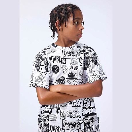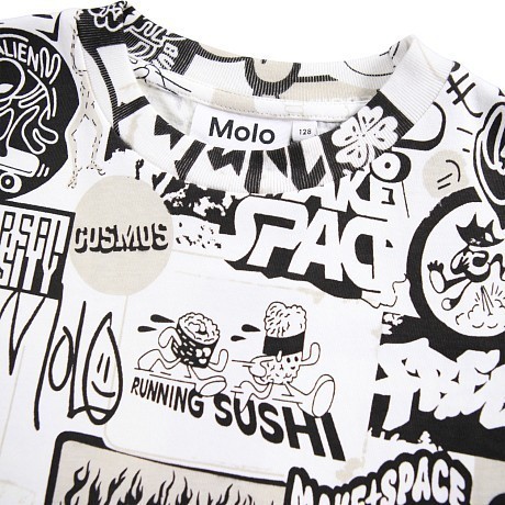Футболка Molo – это идеальный выбор для юных модников! Изготовленная из 100% натурального хлопка, она украшена забавным принтом с черно-белыми мотивами, словами и изображениями. Серый цвет основы с яркими черными элементами создает модный и в то же время нейтральный наряд. На фотографиях видны различные граффити, улыбки, монстрики и другие детали, которые делают эту футболку необычной и привлекательной. Качество от датского бренда Molo и внимание к деталям делают эту футболку отличным выбором для вашего ребенка!