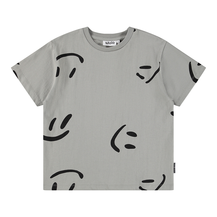 Футболка для мальчиков Molo – это идеальный выбор для веселого настроения! Изготовленная из 100% натурального хлопка, она украшена забавными черными смайликами на светло-сером фоне. Нежная ткань и яркие улыбки создают неповторимую легкость и радость. На фотографиях видна аккуратная черная контрастная окантовка по краю и мягкая текстура ткани. Качество от бренда из Дании и внимание к деталям делают эту футболку отличным выбором для вашего мальчика!