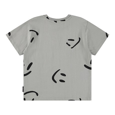 Футболка для мальчиков Molo – это идеальный выбор для веселого настроения! Изготовленная из 100% натурального хлопка, она украшена забавными черными смайликами на светло-сером фоне. Нежная ткань и яркие улыбки создают неповторимую легкость и радость. На фотографиях видна аккуратная черная контрастная окантовка по краю и мягкая текстура ткани. Качество от бренда из Дании и внимание к деталям делают эту футболку отличным выбором для вашего мальчика!