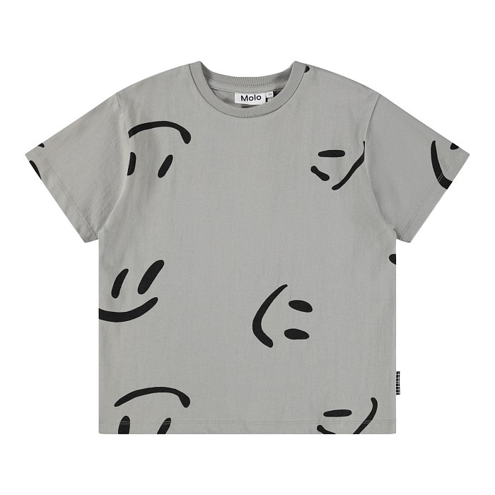 Серая футболка для мальчиков Molo с принтом улыбок - 6W25A209-9433/М/25-02 - купить в LapinLand.ru