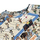 Футболка Molo – это не просто одежда, а целая история о спорте и дружбе! На бежевом фоне раскинулся увлекательный мир баскетбольных площадок, где мультяшные человечки играют в мяч. Яркий дизайн украшен дружелюбными тиграми, медведями и слонами, а надписи "Better Together" и "Unity" учат важности командной работы. Изготовленная из 100% натурального хлопка, эта вещь от датского бренда Molo обеспечит отличную вентиляцию и удобство во время самых активных игр вашего сына!