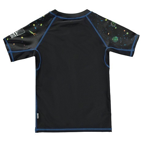 Футболка для плавания Molo – это идеальный выбор для мальчиков! Черный цвет с ярким принтом китов и медуз создает неповторимую атмосферу подводного мира. Изготовлена из 85% полиэстера и 15% эластана, подкладка из нейлона и эластана обеспечивает комфорт и длительное ношение. Качество от датского бренда Molo делает эту футболку отличным выбором для вашего ребенка. На фотографиях видны аккуратные синие контрастные окантовки по краю и мягкая текстура ткани. Качество от бренда из Дании и внимание к деталям делают эту футболку отличным выбором для вашего малыша!