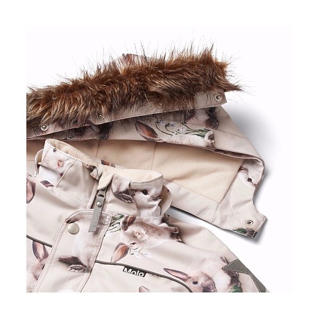 - 🎨 Дизайн: кролики, звезды, зеленые травы, белые звезды, мягкий мех на капюшоне
