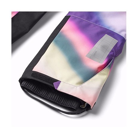 - 🎨 Дизайн: яркий радужный принт с фиолетовым цветом, черные вставки на коленях