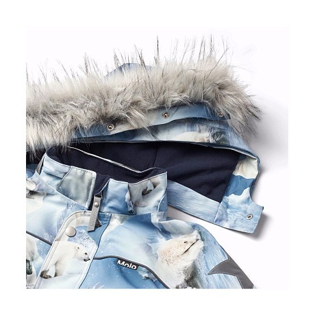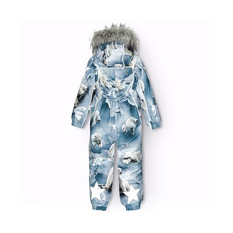 Комбинезон Molo – это идеальный выбор для зимних прогулок! Изготовленный из 55% полиэстера + 45% полиэстера переработанного + наполнения 83% полиэстера переработанного, 17% полиэстера + подкладки 100% полиэстера переработанного + подкладки 100% нейлона переработанного + отделки 100% полиэстера, этот комбинезон обеспечит вашему мальчику комфорт и тепло. На серо-голубом фоне украшен милыми белыми медведями и звездами, которые создадут неповторимое настроение. На фото видна теплая меховая воротник и удобная застежка на молнии. Качество от датского бренда Molo и внимание к деталям делают этот комбинезон отличным выбором для вашего мальчика!