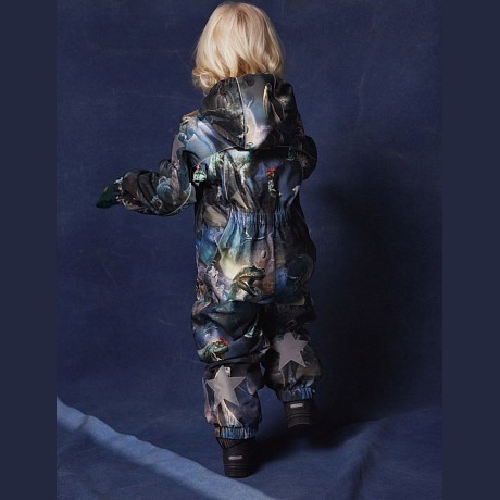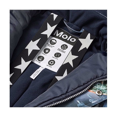 Комбинезон для мальчиков Molo – это идеальный выбор для детей! Изготовлен из переработанного полиэстера, он обеспечивает комфорт и тепло. Темно-синий цвет с милым принтом динозавров и звезд делает эту модель не только стильной, но и увлекательной. На фото видна аккуратная контрастная окантовка по краю и мягкая текстура ткани. Качество от датского бренда и внимание к деталям делают этот комбинезон отличным выбором для вашего ребенка!