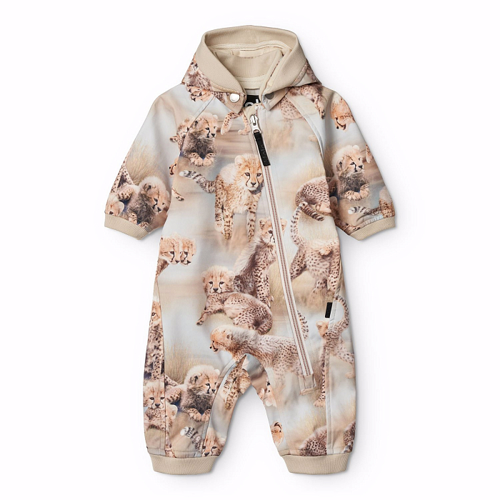 Комбинезон Molo – это идеальный выбор для мальчиков! Изготовленный из 50% полиэстера переработанного и 50% полиэстера, он украшен очаровательными изображениями гепардов. Бежевый фон с яркими контрастными гепардами создает игривое и стильное настроение. На фотографиях видны аккуратные манжеты по краю рукавов и брюк, а также удобная застежка-молния на передней части. Качество от датского бренда и внимание к деталям делают этот комбинезон отличным выбором для вашего малыша!