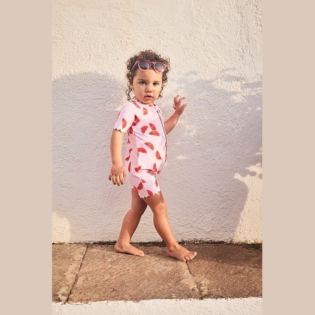 Купальный комбинезон для девочек бледно-розовый с арбузами