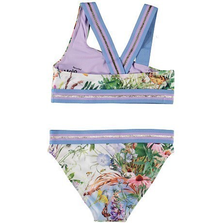 Двухпредметный купальник Molo – это идеальный выбор для девочек! Изготовлен из высококачественного материала 85% полиэстер, 15% эластан + подкладка 85% нейлон, 15% эластан, что делает его гипоаллергенным и эластичным. Купальник украшен эксклюзивным дизайном с цветочными мотивами и бабочками на бежевом фоне. Благодаря удобной посадке и эластичной резинке, он идеально сидит на фигуре вашего ребенка. На фотографиях видны яркие цветы, зеленые листья и бабочки, а также голубые и розовые полоски на верхней части купальника. Купальник Molo – это не только стиль, но и комфорт для вашего ребенка!