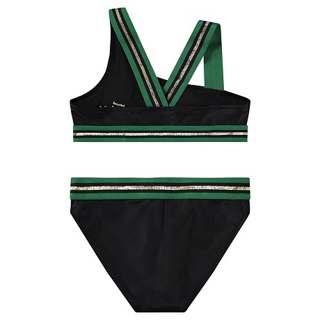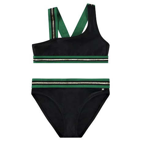 Двухпредметный купальник Molo – это идеальный выбор для девочек! Изготовлен из 78% переработанного полиэстера и 22% эластана, с подкладкой из нейлона и эластана. Купальник черного цвета с зелеными полосками и звездочками создает стильный и модный образ. На фотографиях видны зеленые полоски с золотистым блеском и звездочки на черном фоне. Качество от бренда из Дании и внимание к деталям делают этот купальник отличным выбором для вашего ребенка!