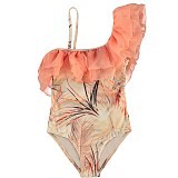 Цельнокроенный купальник для девочек Molo с принтом листьев и оборками