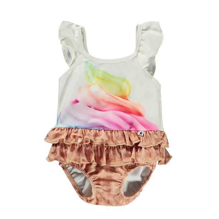 Купальник цельнокроенный для девочек Molo – это идеальный выбор для летних купаний! Изготовлен из переработанного полиэстера и эластана, подкладка из полиамида. Мягкий и эластичный материал обеспечивает комфортную посадку, а принт мороженого в серо-зеленых тонах добавляет яркости и радости. Качество от датского бренда Molo делает этот купальник отличным выбором для вашего ребенка! Быстрая доставка СДЭК по всей России.