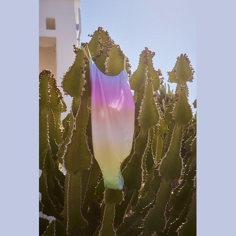 Цельнокроенный купальник для девочек с градиентом от розового до зеленого