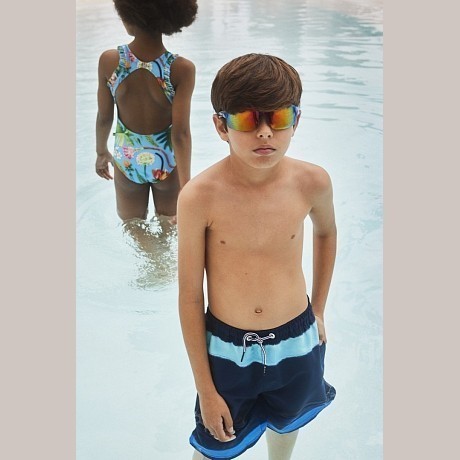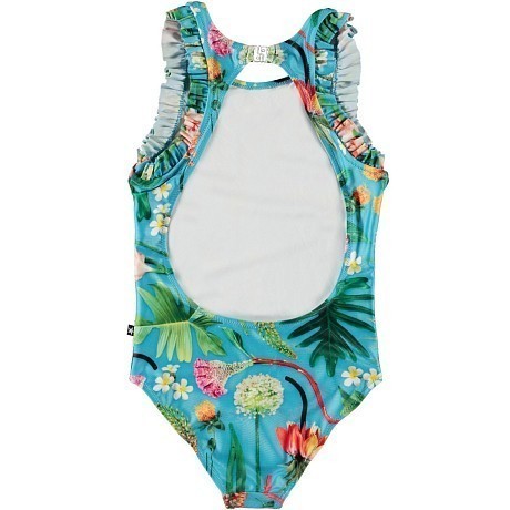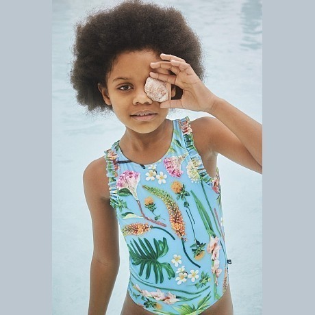 Бирюзовый цельнокроенный купальник для девочек Molo с тропическим принтом