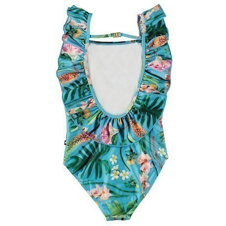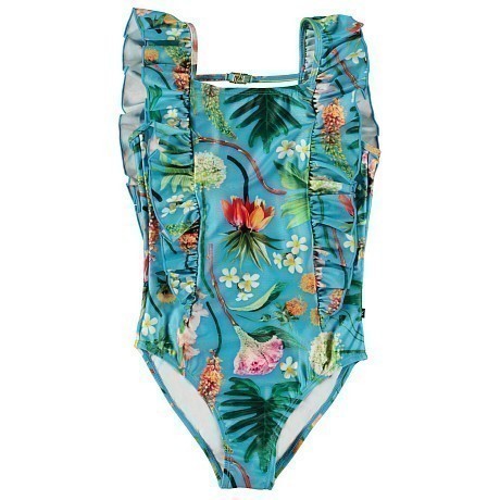 Цельнокроенный купальник для девочки Molo бирюзовый с тропическим принтом – это идеальный выбор для летних купаний! Изготовлен из 85% переработанного полиэстера и 15% эластана, а подкладка выполнена из 85% нейлона и 15% эластана. Купальник украшен мягкими оборками и ярким тропическим принтом с цветами и листьями на бирюзовом фоне. Мягкая ткань и эластичные материалы обеспечивают комфорт и свободу движений, а тропический принт добавляет яркости и веселья. На фотографиях видны мягкие оборки по краю купальника и яркий тропический принт с цветами и листьями. Купальник с мягкими оборками и тропическим принтом от Molo – отличный выбор для вашего ребенка!