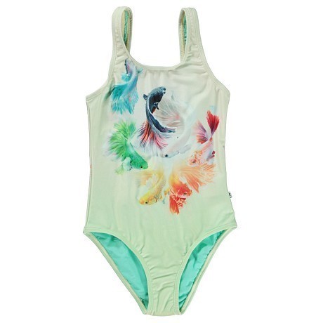 Купальник цельнокроенный для девочек Molo с принтом рыбок серо-зеленый